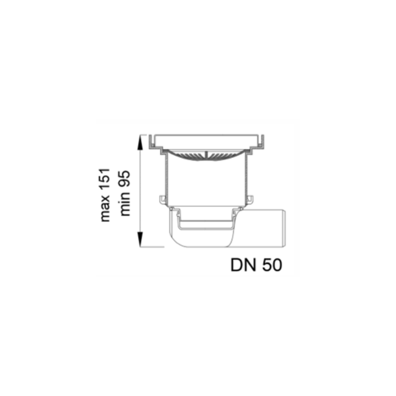 بيبه حمام بالوش قابلة للتبليط 15سم DL-61-15RGH تصريف جانبي 50مم روز جولد مط من بيورا