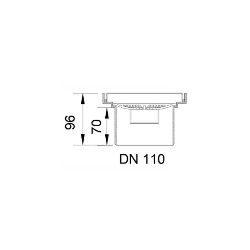 بيبه حمام بالوش 20سم FD-GB-20 بالعلاية تصريف رأسي 110مم زجاج أسود لامع اطار معدن كروم من بيورا