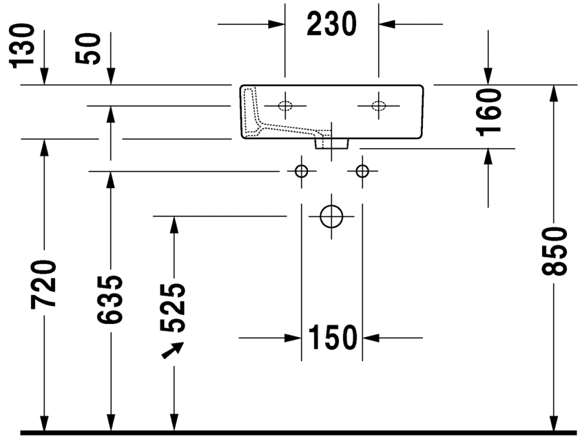 حوض 50سم ساقط رخامة أو لوحدة موبيليا فيرو أبيض من ديورافيت