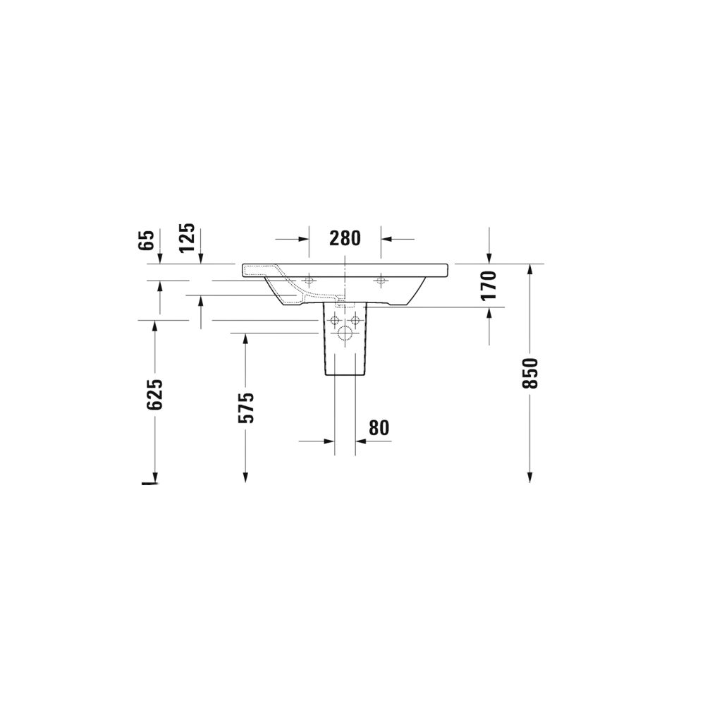 حوض 80سم شمال بالعامود المعلق ديوراستايل أبيض من ديورافيت
