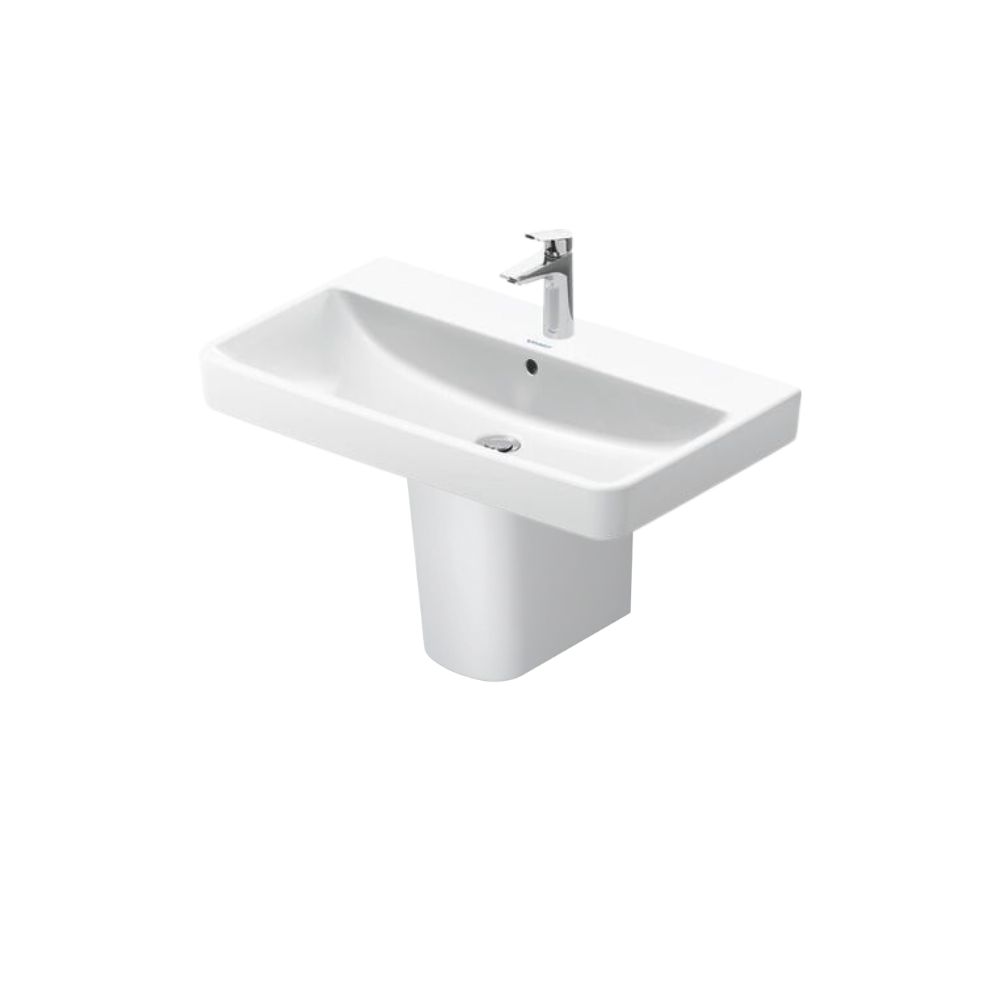 الحوض ديورافيت 80سم نمبر وان بالعامود المعلق أبيض مصنوع من سيراميك صحي عالي الجودة بسطح أملس مقاوم للبقع والترسبات، مما يجعل تنظيفه سهلًا وسريعًا، ويحافظ على لمعانه ومظهره الجديد حتى مع الاستخدام المستمر.