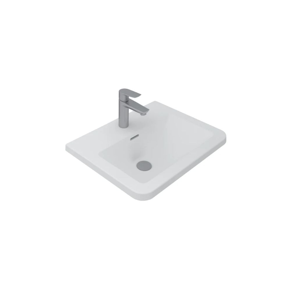 حوض ساقط رخامة 55سم بفتحة خلاط أوبيرون أبيض من ساني بيور