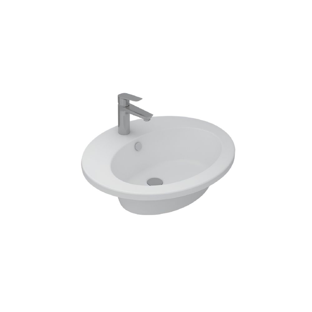 حوض ساقط رخامة 60سم بفتحة خلاط ساترن أبيض من ساني بيور