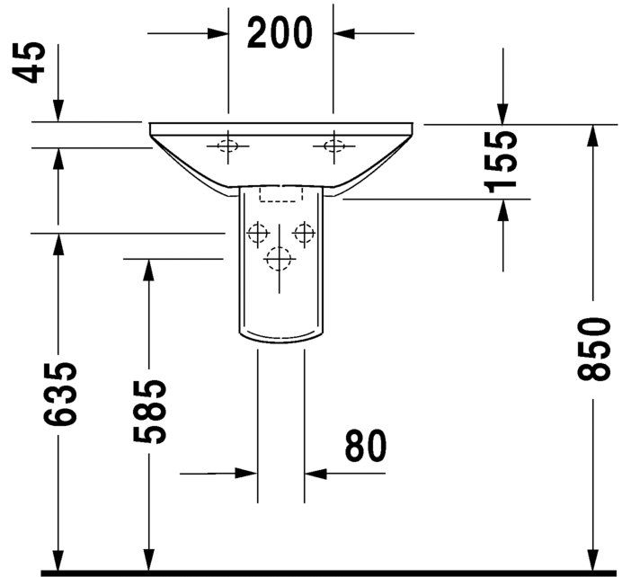 حوض 50سم بالعامود المعلق كارو أبيض من ديورافيت