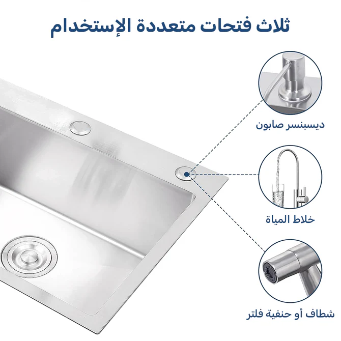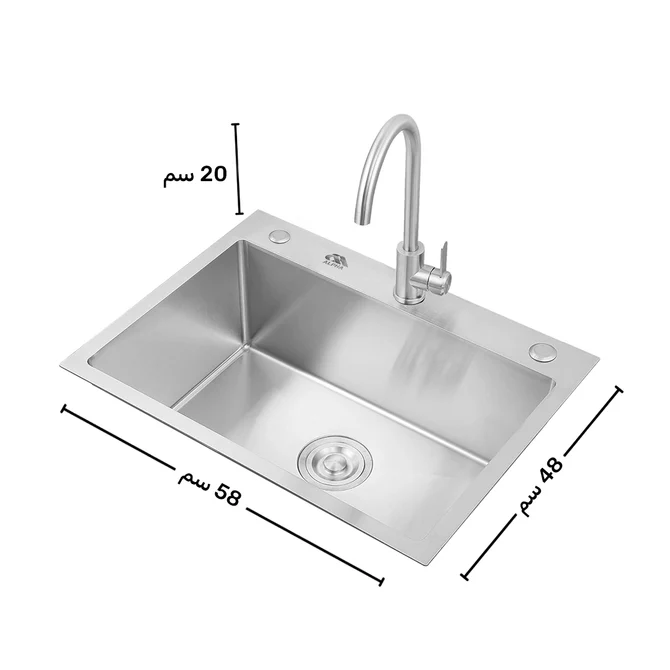 حوض مطبخ هاند 48×58سم استانلس ستيل من الفا
