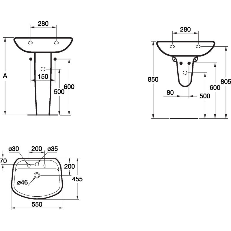 الحجم 55 سم يُعد من المقاسات العملية التي تناسب الاستخدام اليومي، حيث يوفر مساحة كافية لغسل اليدين والوجه براحة تامة دون التسبب في تناثر المياه خارج نطاق الحوض. كما أن عمق الحوض مدروس بعناية ليجمع بين الراحة والكفاءة في الاستخدام.