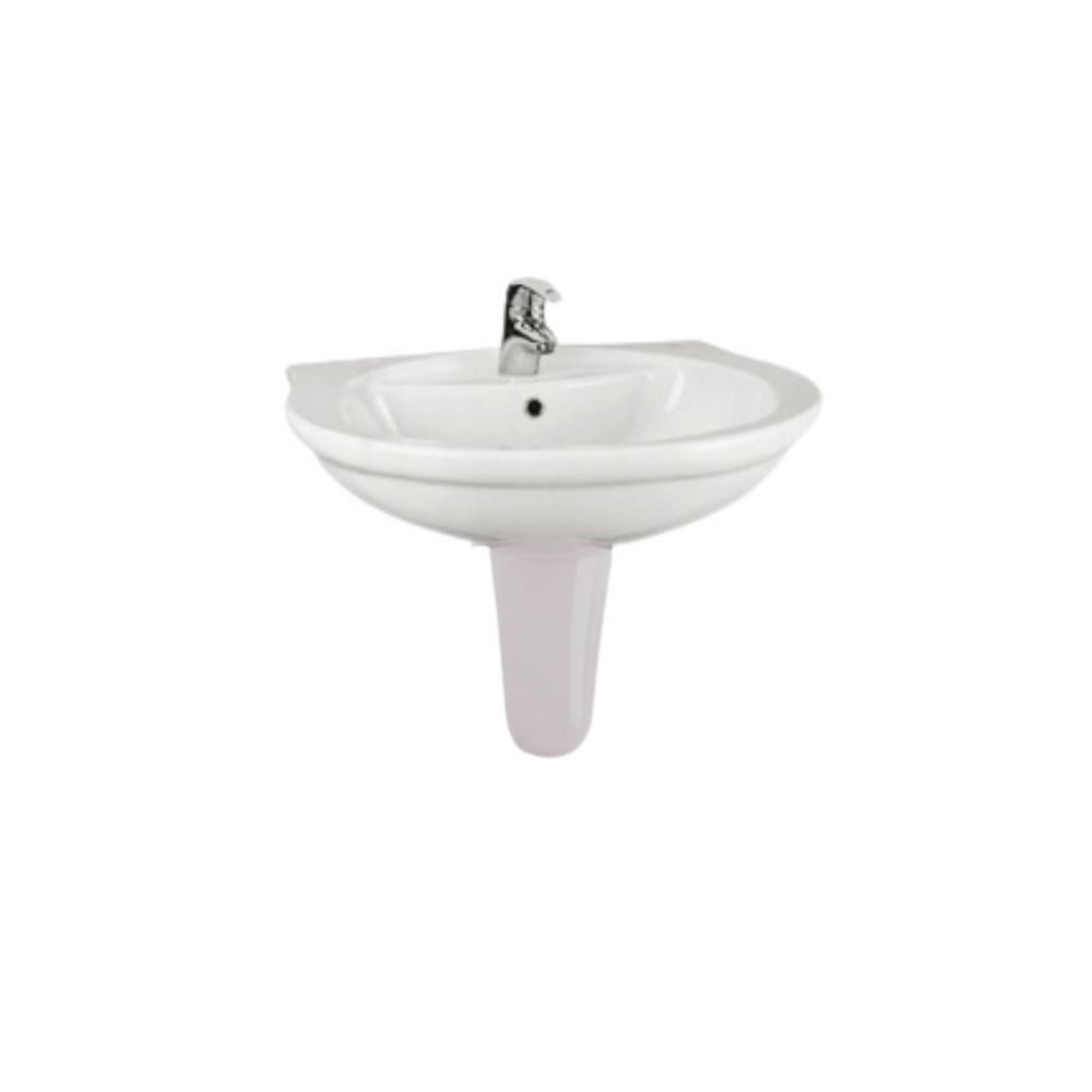 العامود المعلق المصاحب للحوض صُمم بعناية ليتناسق تمامًا مع شكل الحوض، مما يخلق وحدة متكاملة ومتجانسة داخل الحمام. دوره لا يقتصر على الجانب الجمالي فقط، بل يؤدي وظيفة عملية مهمة تتمثل في إخفاء التوصيلات الصحية، ما يمنح الحمام مظهرًا مرتبًا وخاليًا من التفاصيل غير المرغوب فيها.