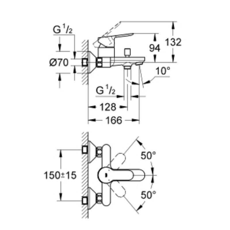 النوع: خلاط بانيو جداري (Wall-Mounted Bath Mixer)