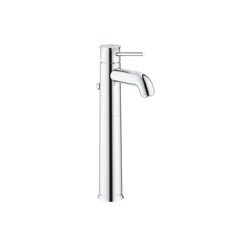الارتفاع الاستثنائي (XL-Size): تم تصميم خلاط حوض اكس لارج بالطابق باو كلاسيك كروم من جروهي 32868000 بارتفاع شاهق ليناسب الأحواض التي يتم تركيبها فوق سطح الرخامة (Vessel Basins)، مما يوفر مساحة واسعة ومريحة لغسل اليدين دون عوائق.