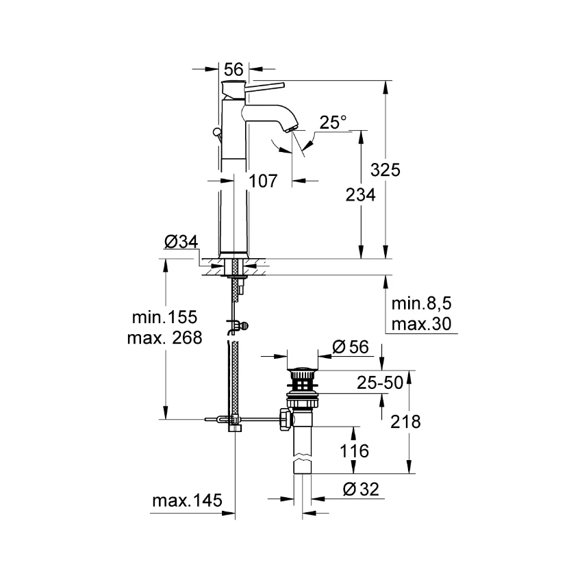 خلاط حوض اكس لارج بالطابق باو كلاسيك كروم من جروهي 32868000