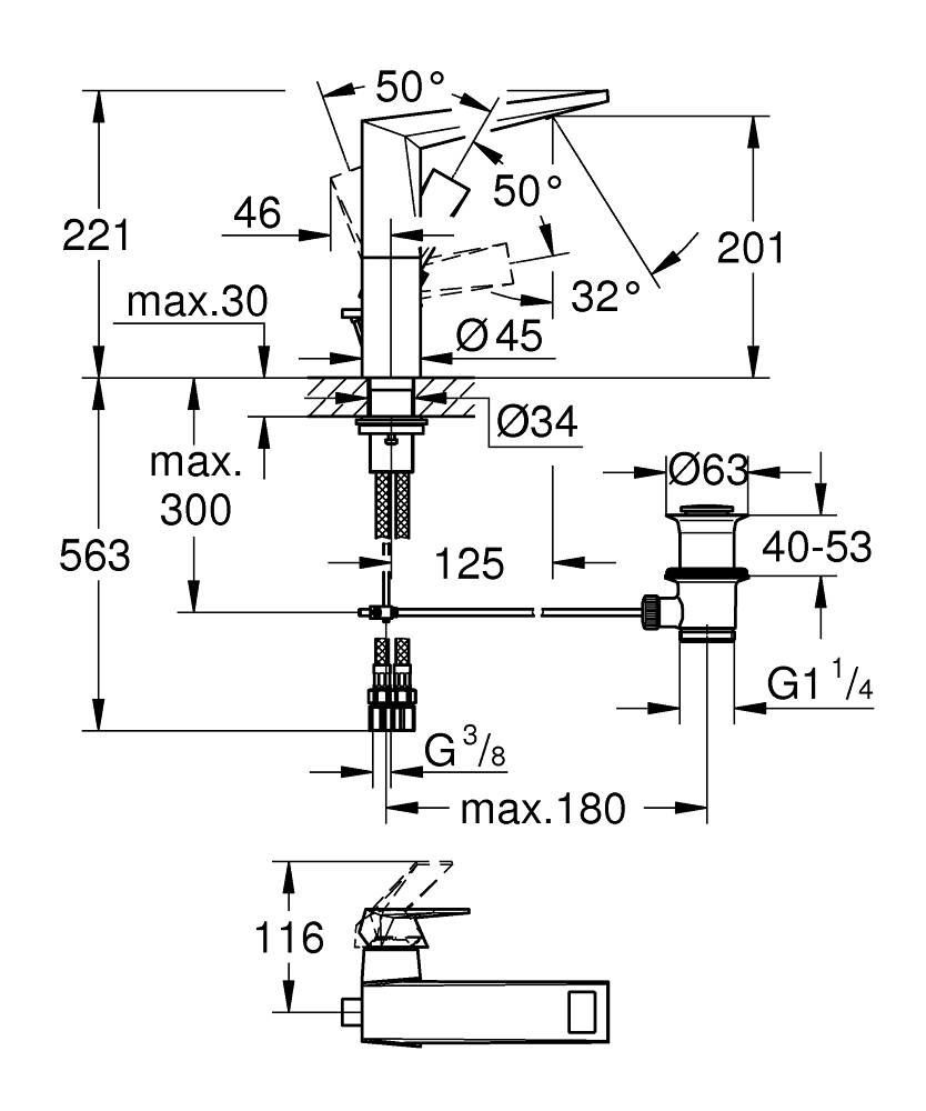 تركيب: فتحة واحدة فوق الحوض (Deck-mounted)