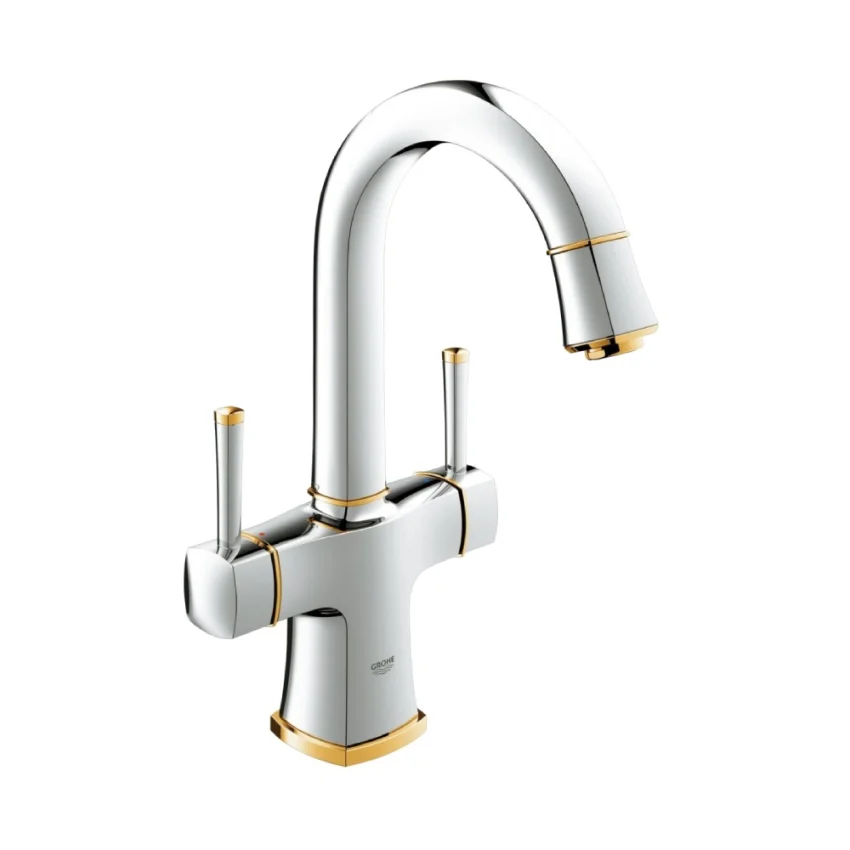 خلاط حوض لارج قابل للدوران 2 مقبض جرانديرا كروم*ذهبي من جروهي 21107IG0