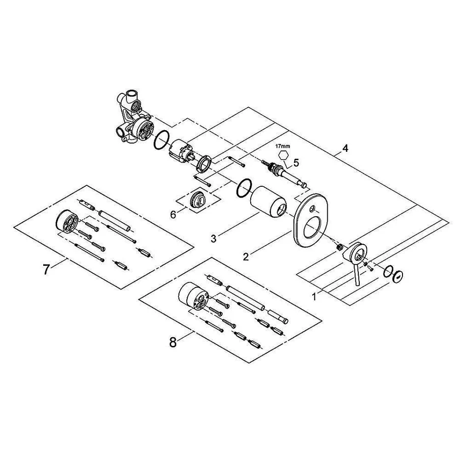 يأتي المنتج مع جسم الدفن الأصلي من جروهي، المصنع من سبائك النحاس عالية الجودة والمقاومة للتآكل. تم تصميم هذا الجسم ليُزرع داخل الحائط بأمان تام، مع ضمان عدم وجود أي تسريبات داخلية قد تضر بهيكل المبنى.