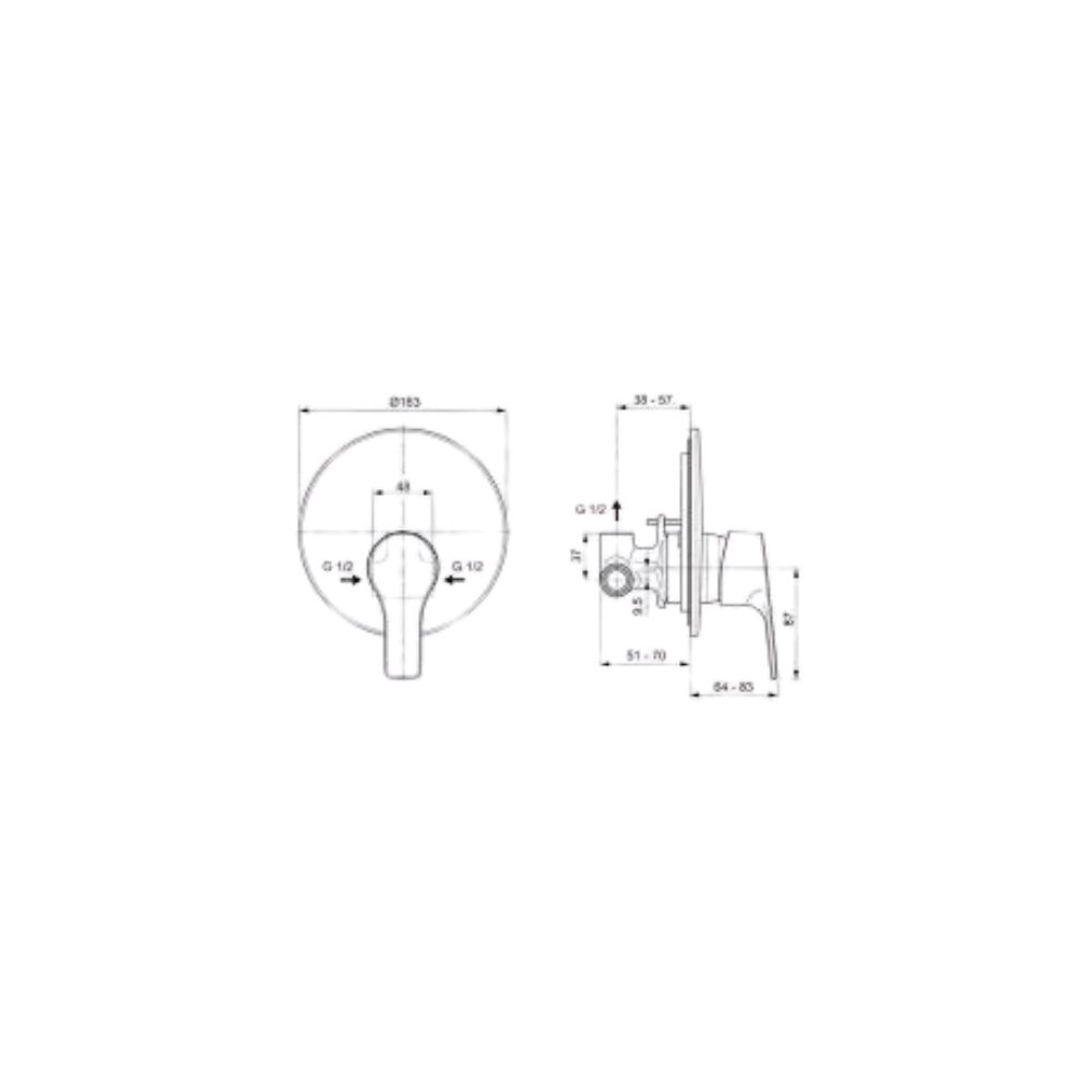 خلاط شاور شامل جسم الدفن 2مخرج ايديال ستريم كروم من ايديال ستاندر