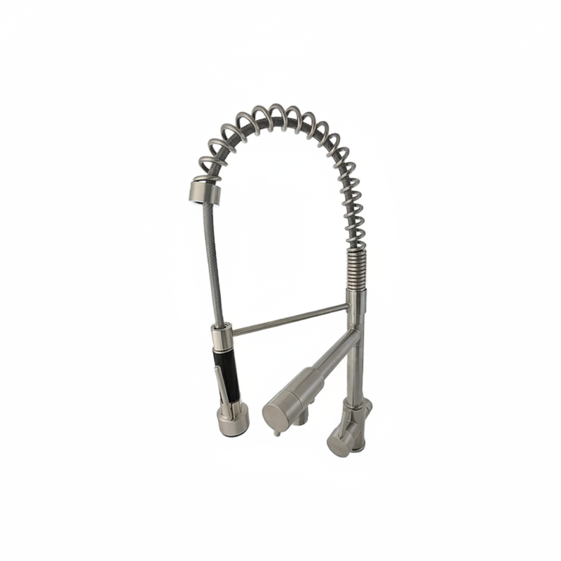 خلاط مطبخ بخرطوم سوستة و سماعة بمخرج فلتلر أزاليا ستيل نيكل كروم من جواد