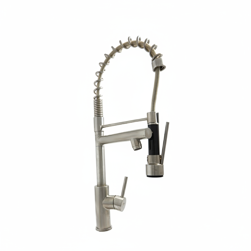 خلاط مطبخ بخرطوم سوستة و سماعة جوري ستيل نيكل كروم من جواد