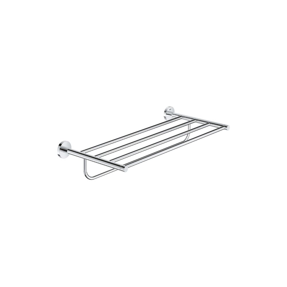 رف جروهي بشكير اسنشيال كروم 40800001 تصميم أنيق بتشطيب كروم لامع لترتيب المناشف والفوط بطريقة عملية وجمالية في الحمّام، مصنوع من خامات متينة ومقاومة للصدأ. مكرم ستورز موزع متمد لشركة جروهي.