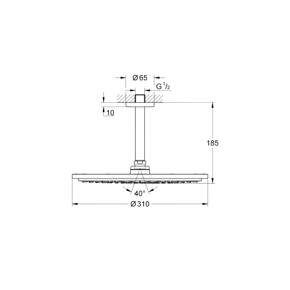 أحد العناصر المميزة في طاسة شاور جروهي رين شاور 26067DA0 روز جولد لامع 31سم دائرية بالعامود السقفي 14.2سم هو العامود السقفي المرفق بطول 14.2 سم. هذا الذراع السقفي القصير يوفر تثبيتًا مثاليًا للطاسة في منتصف السقف، مما يسمح بسقوط الماء مباشرة من أعلى بطريقة طبيعية تشبه سقوط المطر. بالإضافة إلى ذلك، هذا الطول مدروس بعناية ليكون مناسبًا للحمامات ذات الأسقف المتوسطة والمنخفضة، ويوفر زاوية مثالية لتدفق الماء دون إزعاج أو تشتت. تصميم الذراع أنيق وبسيط، مما يجعله جزءًا متناغمًا من المنظومة الكاملة للدش، ويساهم في إبراز الطاسة كعنصر جمالي رئيسي داخل الحمام.