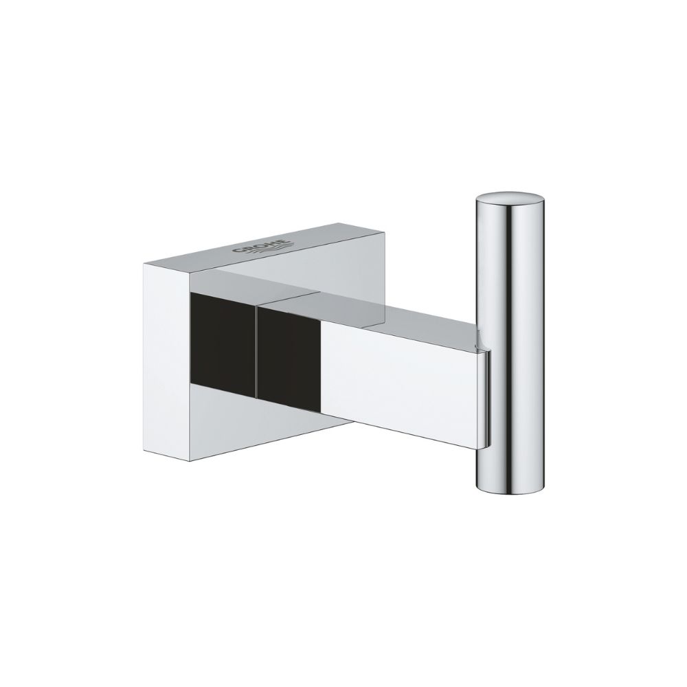 علاقة جروهي روب اسنشيال كيوب 40511001 كروم تصميم عصري عملي لتعليق روب الحمّام أو المناشف بأناقة، مع جودة متينة وتوافق مثالي مع بقية تجهيزات الحمّام من جروهي. مكرم ستورز موزع متمد لشركة جروهي.