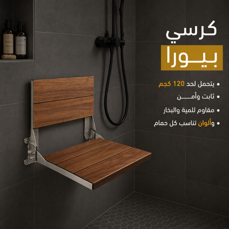 كرسي شاور قابل للطي 40*30سم SS-CB-P20 كومفورت براون من بيورا