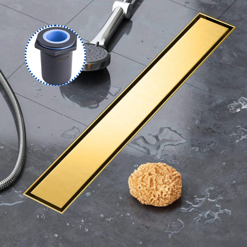 مجرى شاور بالوش قابلة للتبليط 60سم DL-08-60GV تصريف رأسي 50مم ذهبي مط من بيورا