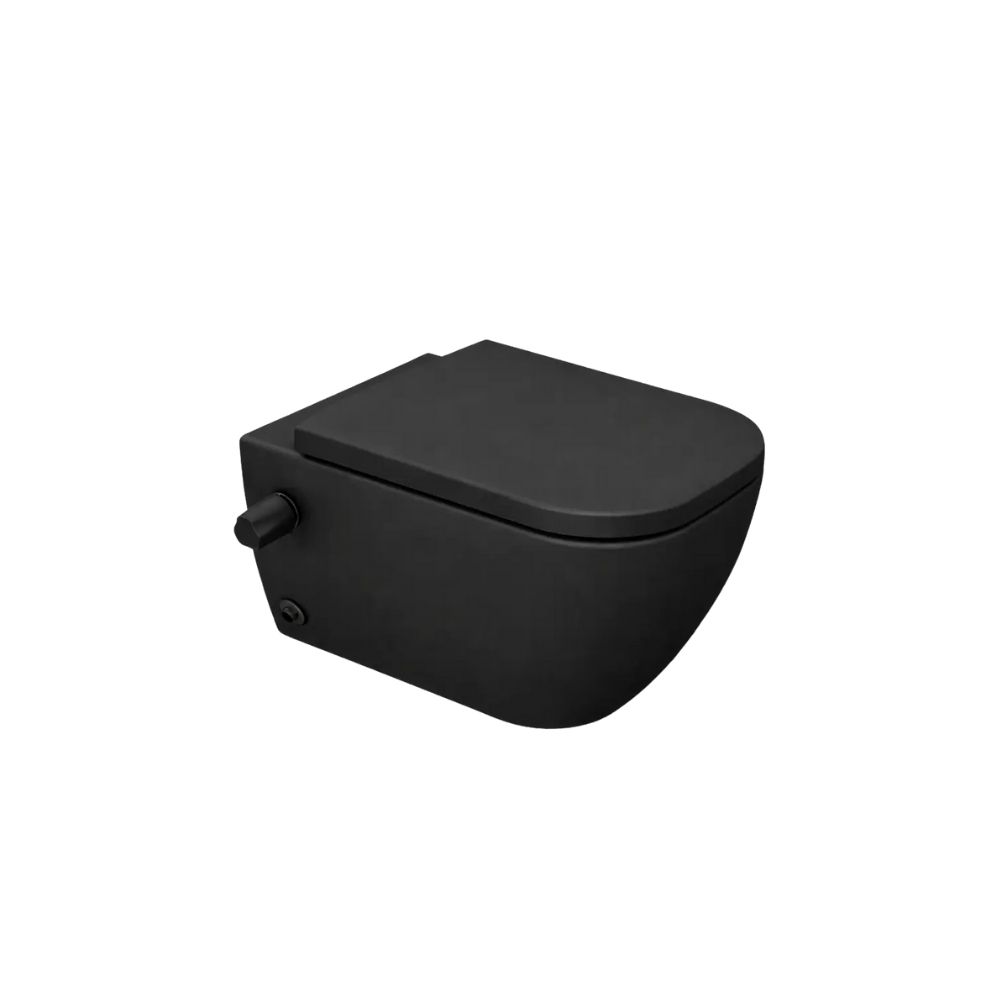 مرحاض معلق بالدش والسديلي البلاستيك فيجا أسود مط من ساني بيور