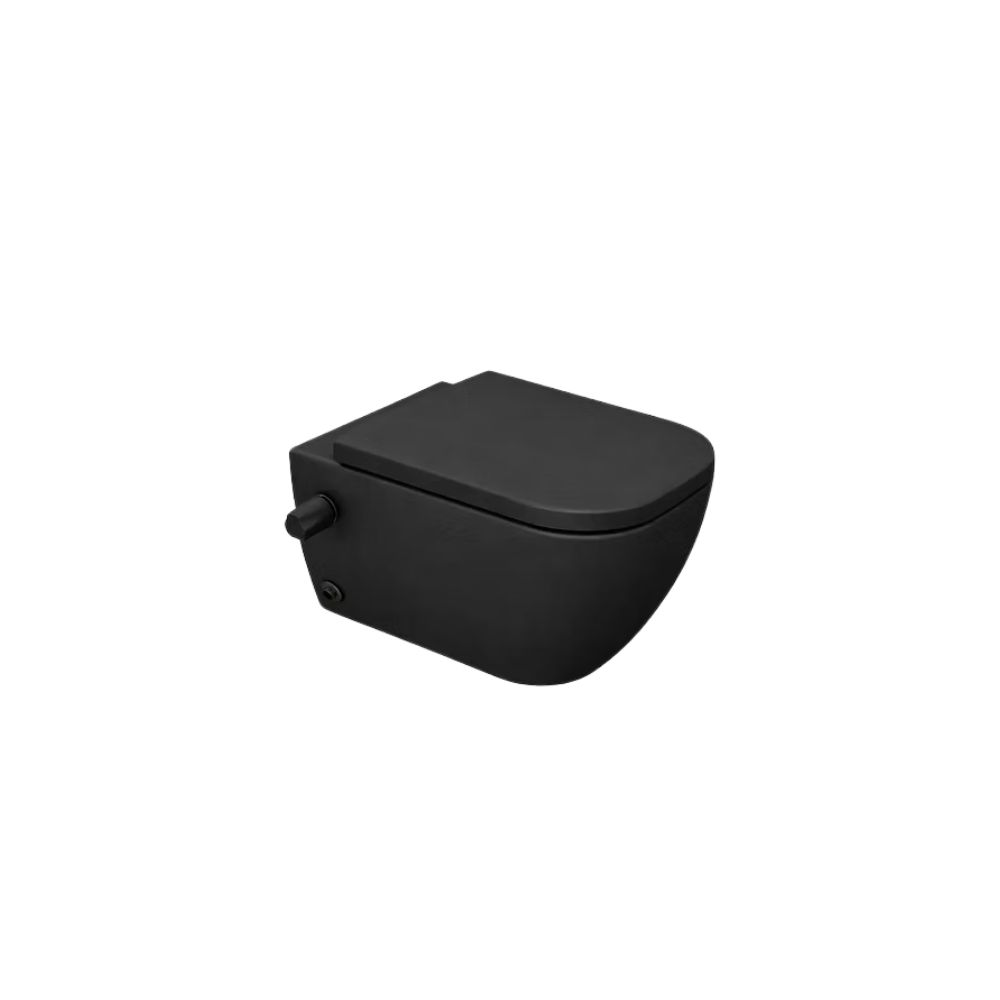 اللون الأسود المط يمنح المرحاض مظهرًا فاخرًا وغير تقليدي، ويتميّز بقدرته على إخفاء آثار الاستخدام وبصمات المياه مقارنة بالأسطح اللامعة، مما يحافظ على الشكل الأنيق لفترات أطول مع مجهود أقل في التنظيف. كما يتناسق هذا اللون بسهولة مع الرخام، السيراميك الفاتح أو الداكن، والإكسسوارات المعدنية.