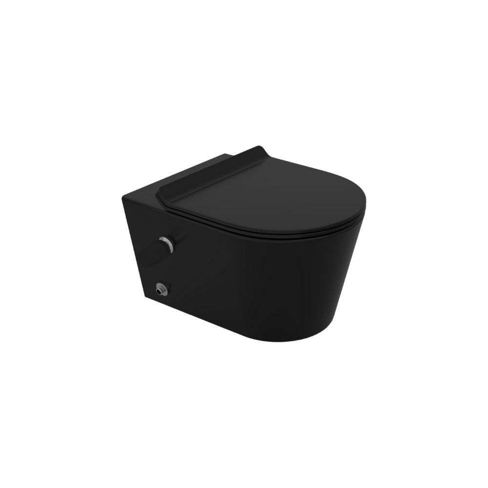 مرحاض معلق بالدش والسديلي البلاستيك تايتن أسود مط من سانى بيور