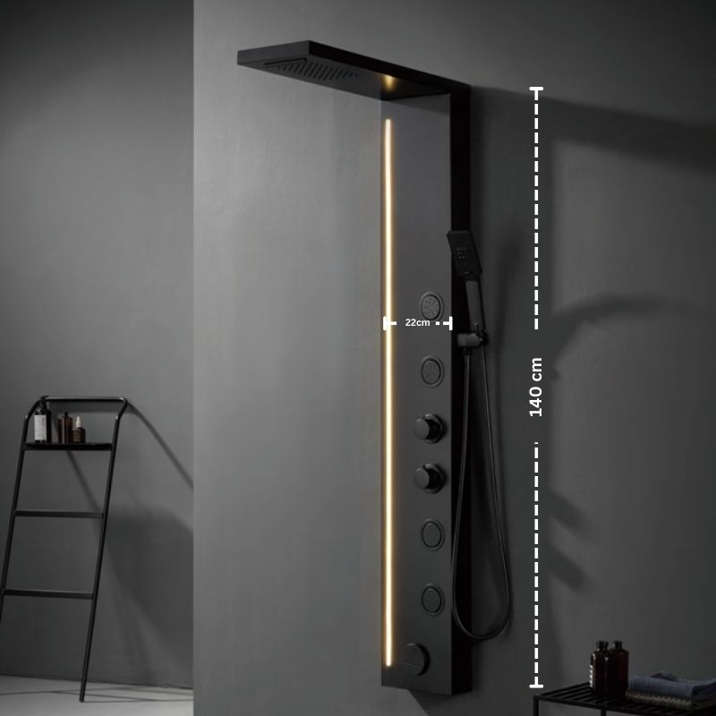 تأتي وحدة شاور بانل MIA بتصميم هندسي أنيق يتميّز بخطوط منسابة وانحناءات جذّابة، مع تشطيب أسود مطفي يمنح مظهرًا مودرن يناسب أحدث صيحات تجهيزات الحمام. هذا اللون ليس مجرد شكل جمالي، بل هو طلاء مقاوم للخدش والتآكل، ما يجعله يحتفظ بمظهره الفاخر حتى مع الاستخدام اليومي المستمر.