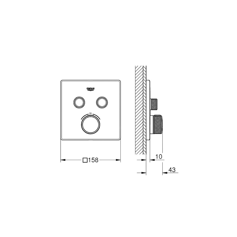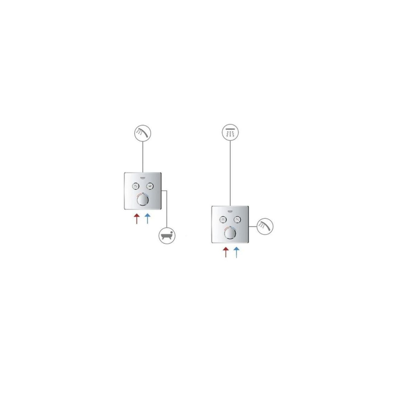 وش خلاط شاور سمارت كونترول مربع 2مخرج كروم من جروهي