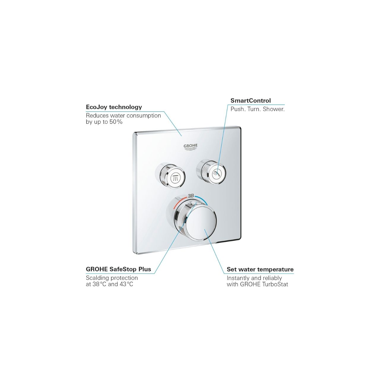 يعكس معايير الجودة الألمانية التي تُعرف بها GROHE عالميًا. جروهي تعتمد على هندسة متقدمة وتقنيات مبتكرة مثل SmartControl، EcoJoy، وStarLight لضمان أفضل أداء واستهلاك مثالي للمياه. الشركة تخضع منتجاتها لاختبارات صارمة لضمان القوة والاعتمادية حتى في ظروف الاستخدام الشديد. جروهي ليست مجرد علامة تجارية، بل تجربة رفاهية مستمرة في كل تفصيلة. اختيارك لأي منتج من جروهي يعني ضمان الجودة والاستمرارية، خاصة مع ضمان 5 سنوات + 7 سنوات توافر قطع غيار، مما يجعلها العلامة الأكثر أمانًا للمستخدمين الباحثين عن الثقة والفخامة.