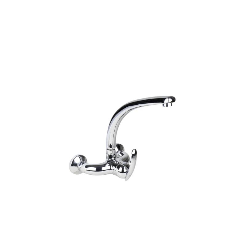 يأتي هذا الخلاط بتصميم حائطي أنيق يوفر مساحة على الحوض ويمنح مظهراً منسقاً للمطبخ، مع تشطيب كروم لامع يعكس الأناقة ويقاوم التآكل والخدوش.